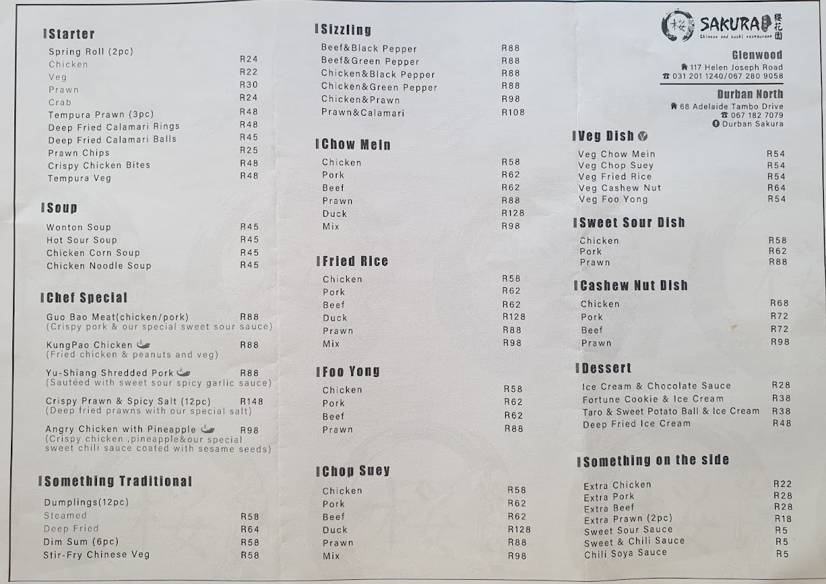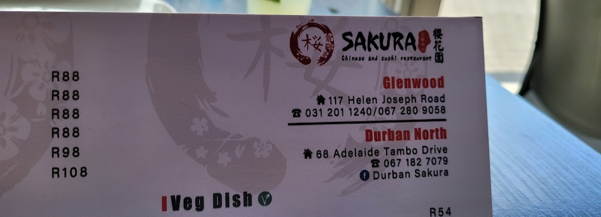 Sakura Durban North Menu
